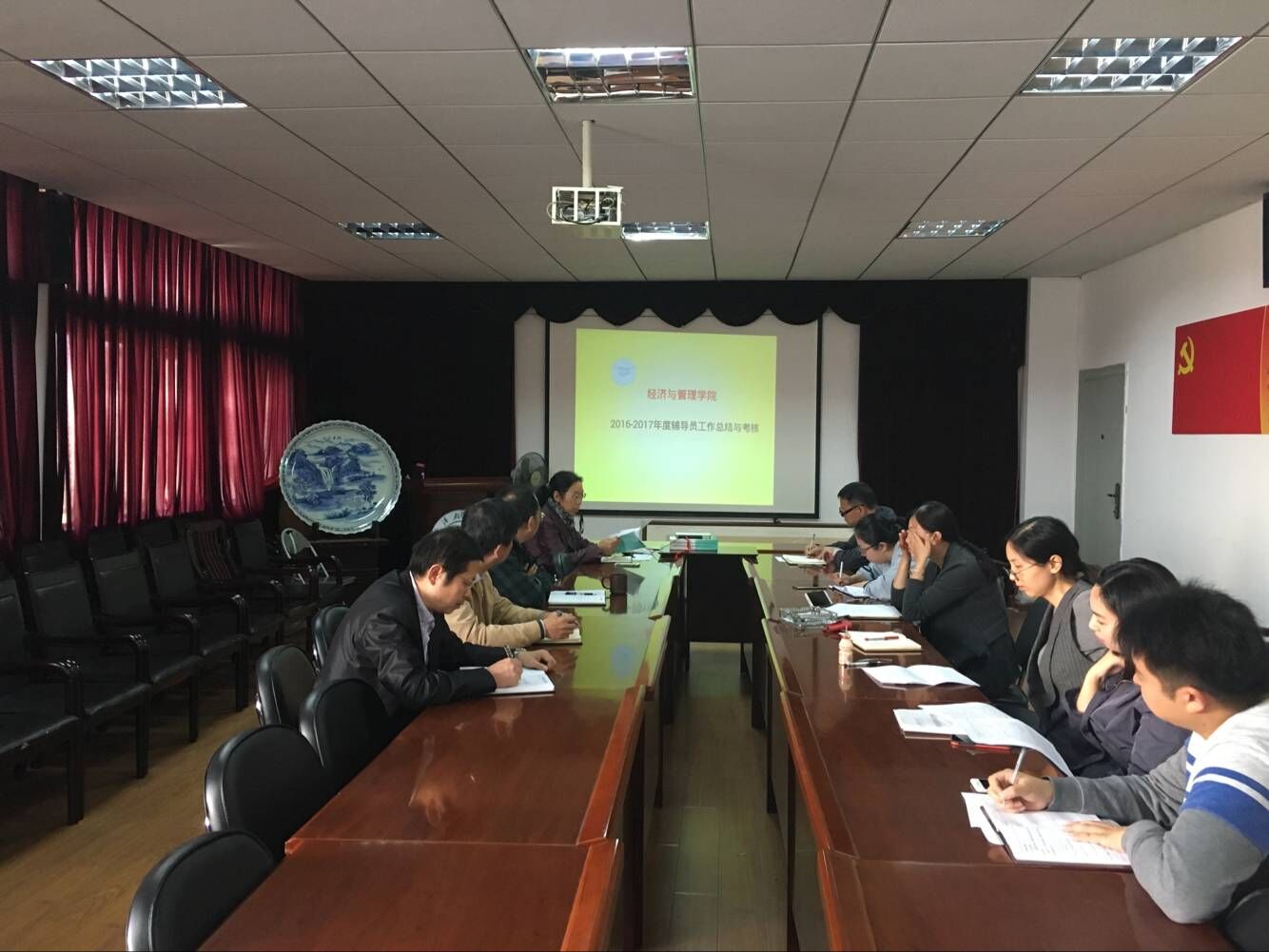 10月27日下午,我院在文管楼五楼会议室召开2016-2017学年度辅导员工作总结与考核会议。学院班子成员和全体辅导员参加了会议,会议由刘红红书记主持。