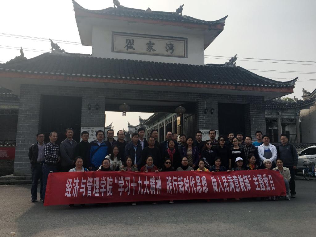 114经管学院组织教工党员赴洪湖瞿家湾学习教育基地开展学习十九大精神 践行新时代思想 人民满意教师主题党日活动学院40余名教工党员参加。