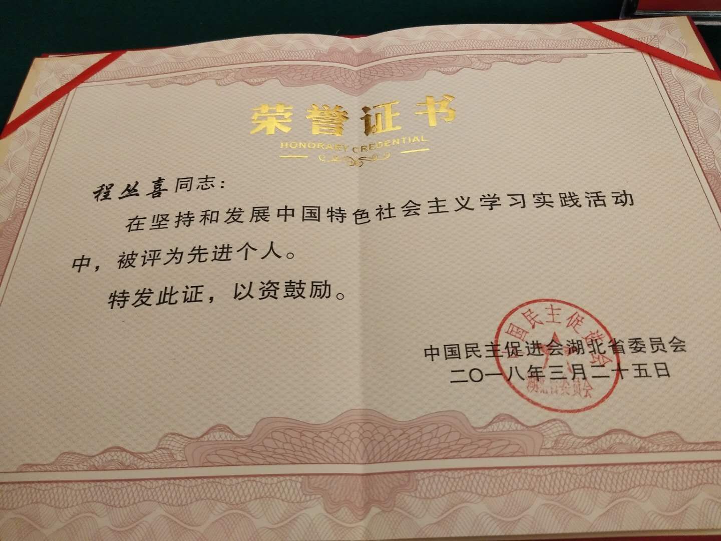 旅游系程丛喜教授荣获民进湖北省委表彰
