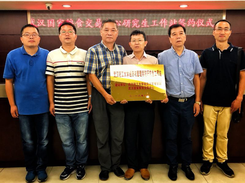 2018年7月12日上午10点,武汉轻工大学经济与beat365体育官网平台与武汉国家粮食交易中心合作建立研究生工作站,并在会议室举行签约与揭牌仪式。武汉国家粮食交易中心副主任刘立光,经管院副院长龙子午与交易中心其他负责人,以及研究生代表参与了工作站的揭牌仪式。