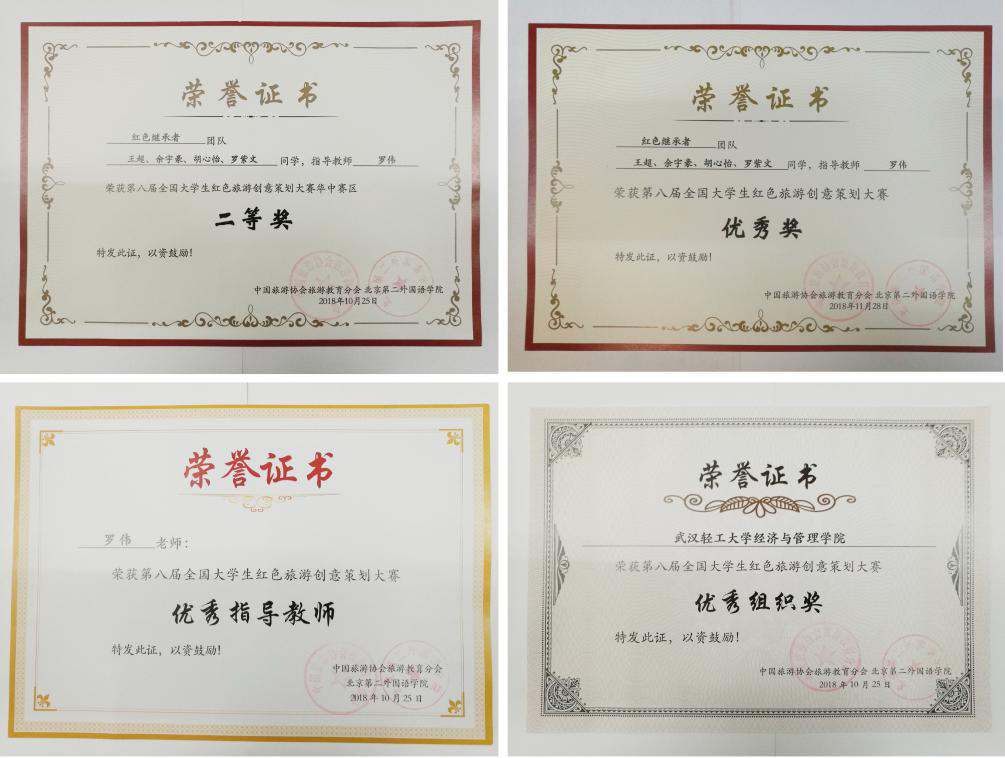 11月27日,由中国旅游协会旅游教育分会、北京第二外国语学院、福建省龙岩市旅游发展委员会主办的第八届大学生红色旅游创意策划大赛决赛在福建长汀成功举办。我校经管学院旅游管理专业学子“红色继承者队”提交的策划作品在比赛中表现不俗,分获“华中赛区二等奖”和“总决赛优秀奖”,我院获得“优秀组织奖”,罗伟老师获得“优秀指导教师”。