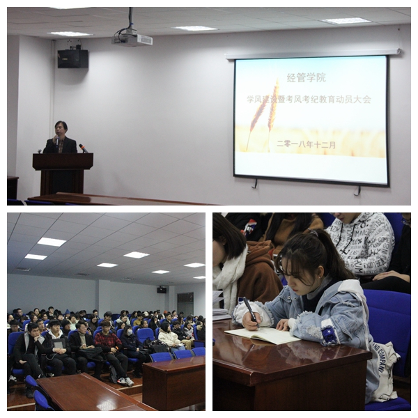 为进一步强化学风建设,营造良好的学习氛围,倡导“诚信考试,诚信做人”,12月14日,我院在文管楼会议室开展学风建设系列活动之“严肃考风,从我做起”考风考纪动员大会,全院班团干部参加会议。会议由学工办主任刘京军主持,学院党委书记肖波明作动员讲话,各年级辅导员出席会议。