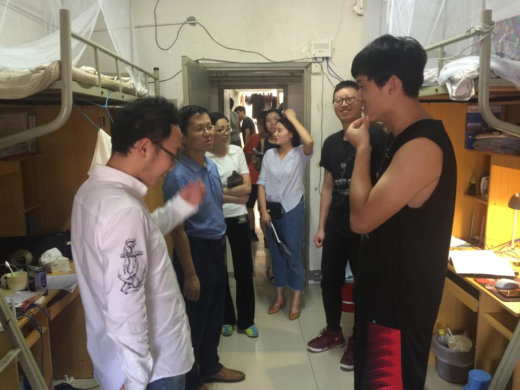 在这次与新生的交流过程中,同学们都对学院领导的来访表示非常的感动,当院领导来访结束走出寝室时,同学们都兴高采烈地挥手说再见,仿佛就像许久未谋面的知己即将分别。这不仅仅是一次简单的交流,也是学院对新生的关爱,更是青春洋溢的少年们亲近学院的第一步。(文彭国莉 周慧琳)