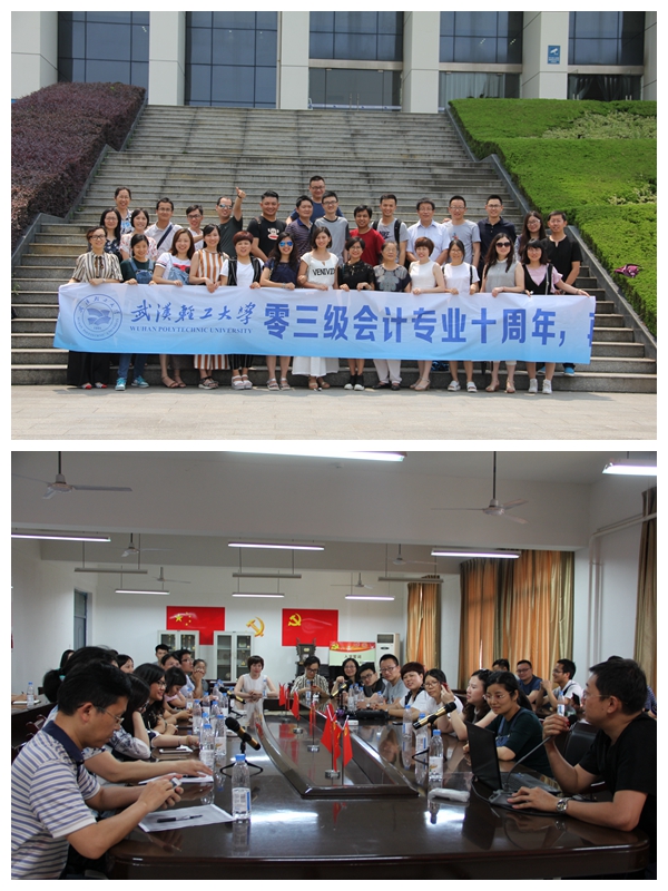 6月17日,经管学院会计专业2003级28名校友毕业十年后重回学校,经管学院刘红红书记和龙子午副院长接待了校友。校友们参观了金银湖校园、体育馆、图书馆,并举行了老师与校友座谈会。