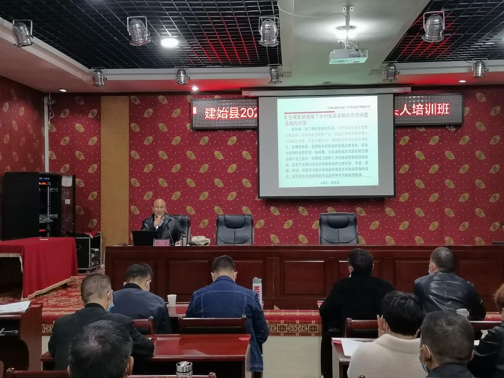 2021年10月22日至23日,应恩施州建始县文旅局邀请,我校beat365体育官网平台程丛喜教授为湖北省恩施州建始县文旅致富带头人作了《全域旅游新语境下乡村旅游营销新思考》和《基于“互联网+”视角的乡村民宿营销策略研究—以湖北省利川市为例》两个方面的专题讲座。来自建始县乡镇村、旅游度假区、酒店和民宿等70多名乡村振兴致富带头人参与了此次专题讲座学习。