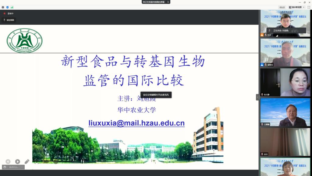 三位主讲嘉宾在随后的主题报告中进行了精彩的演讲。华中农业大学文法学院刘旭霞教授以“新型食品与转基因生物监管的国际比较”为题,介绍了北美、欧盟、日本、阿根廷等地区和国家在新型食品与转基因生物监管方面的做法与差别;华中农业大学王雅鹏教授在“中国粮食安全战略辨析”的报告中,结合大量的数据,分析了新形势下国家粮食安全战略的内容、提出的缘由、实施的障碍以及推进实施的对策建议;西北农林科技大学的王征兵教授生动地结合自己的亲身经历,以 “粮食安全战略与前景分析”为题,从粮食生产现状、现代粮食生产方式、国外粮食产业新特点、粮食产业经营新动态、粮食产业新型经营主体的培育等方面分析了我国粮食安全的战略及前景。