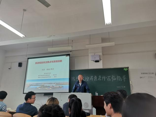 3月15日下午,湖北大学旅游发展研究院院长、武汉轻工大学客座教授马勇在文管楼316举行了主题为“旅游规划关注焦点与系统创新”的讲座,讲座由学院副院长黄猛主持,程丛喜教授带领周霄、罗伟、李娟、刘可等旅游系骨干教师以及旅游管理专业19级全体学生前来观摩讲座。